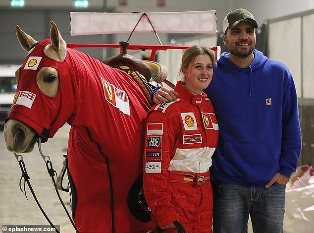 Source: aisvip-a.akamaihd.net Gina maria schumacher, 22, takes the reigns as she pays tribute to father michael with formula one themed routine during horse riding competition.